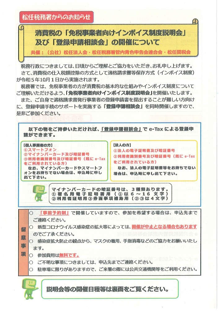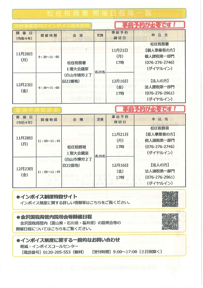 【免税事業者向け】「インボイス制度説明会」・「登録申請相談会」のご案内《11月28日・12月23日》