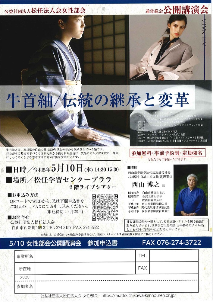 2023.5.10 (水) 14:30~15:30 無料 【西山博之氏】女性部会通常総会・公開講演会 詳細ダウンロード 【女性部会】公開講演会(R5.5.10).pdf お申込参加ご希望の方は下記の『申込フォーム』よりお申込み下さい。定員 60名【申込締切:4月28日(金)】 申込フォーム もどる