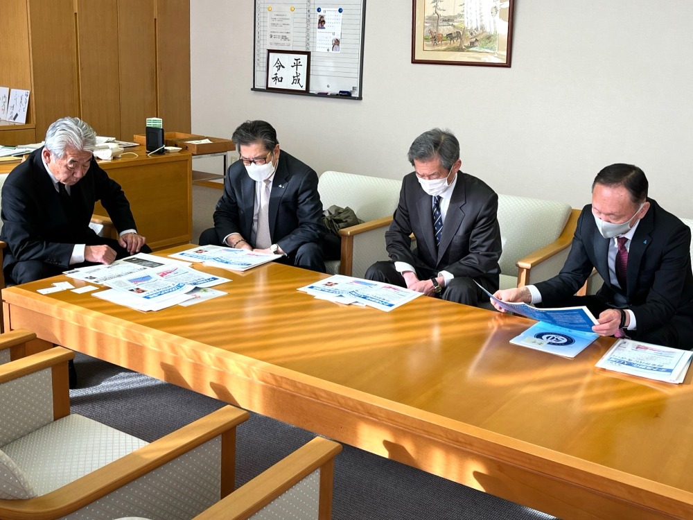 令和4年12月7日、二木会長、吉田税制委員長、髙井事務局長が井田正一副市長、北嶋章光白山市議会議長を訪ね、二木会長から令和5年度税制改正に関する提言書を手渡しました。 来年10月に始まる「インボイス制度」の周知や、地域の中小企業を支援する取り組みの必要性などについて理解を求めました。また、率直な意見交換により、法人会活動に対する理解も深めていただきました。