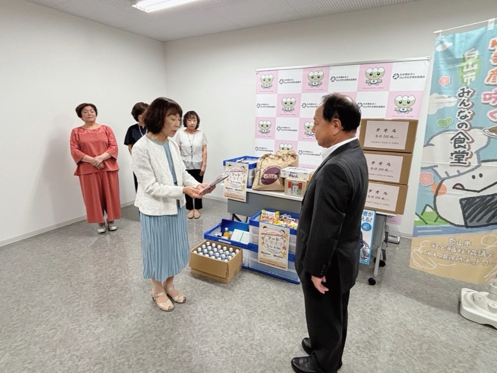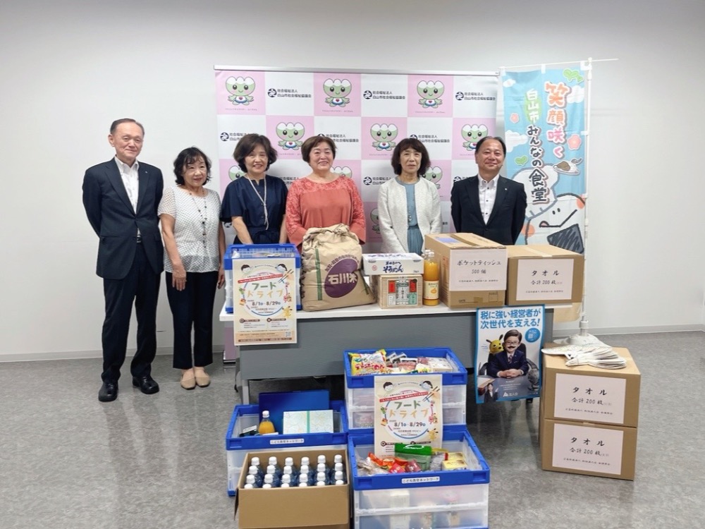 【活動報告】白山市社会福祉協議会へ、タオルと物品の贈呈及びフードドライブを実施しました《9/8》