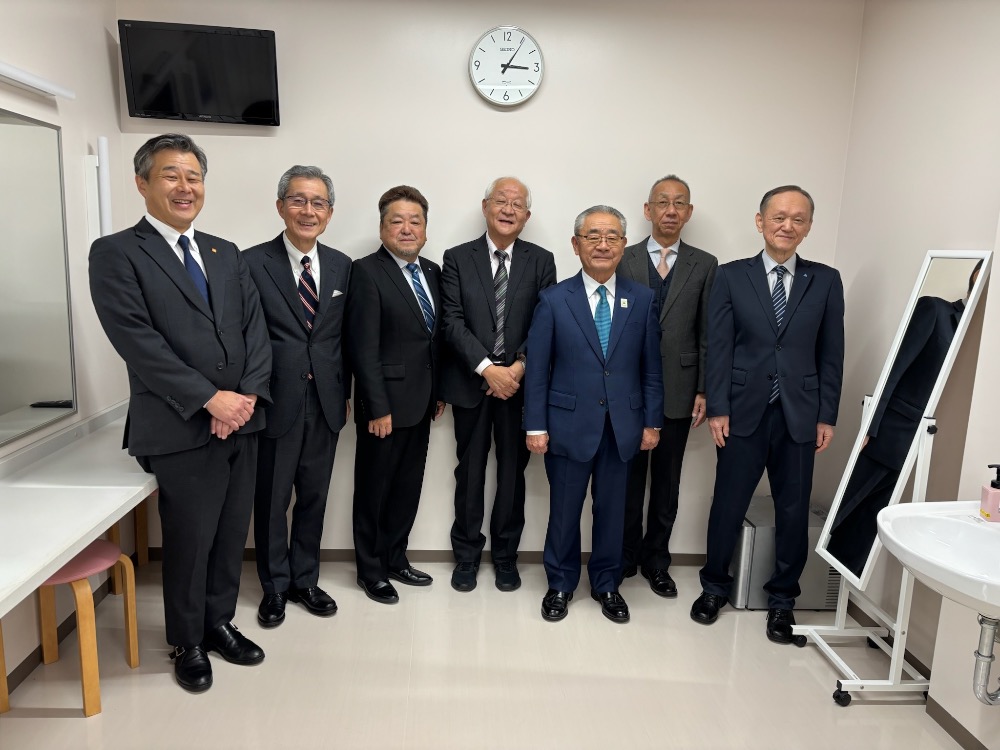 左から、はくさん信用金庫・西 松任支店長、松任法人会・吉田副会長、小柳会長、田﨑氏、松任はくさん会・徳田会長、松任法人会・西山副会長、髙井事務局長