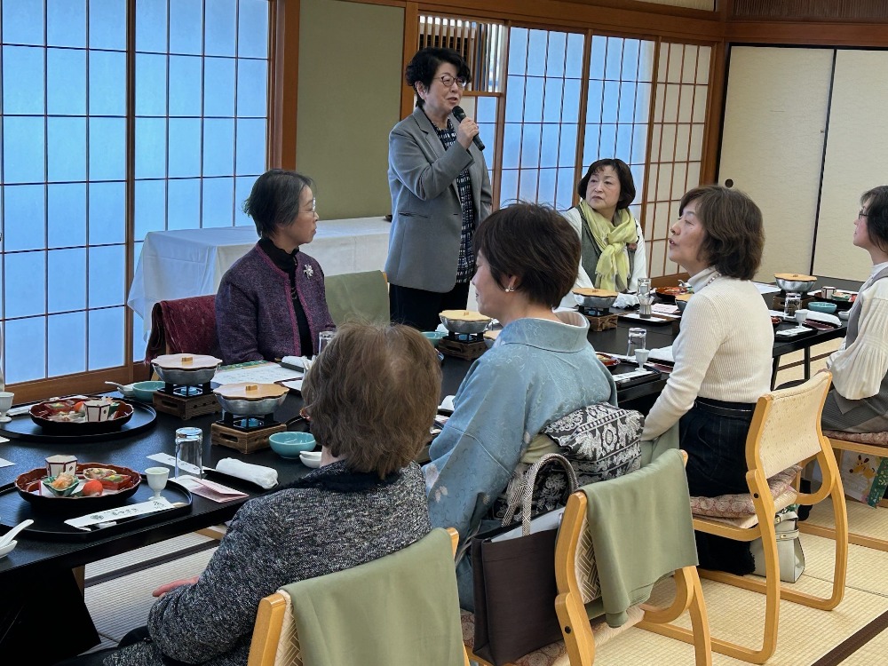 女性部会は、令和8年3月12日(木)辰口温泉「まつさき」において「視察研修&昼食懇談会」を開催し、部会員23名が参加しました。心あたたまるおもてなしと美味しいお料理で、至福のひとときを過ごし、部会員との交流を深めました。